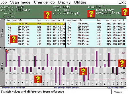 Out ot tolerance swatches will flash on the screen.